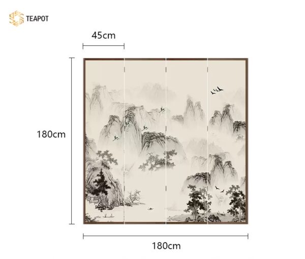 Kích thước tổng thể : Chiều dài tổng 180cm, chiều cao của bình phong 180cm, độ dày của vách bình phong là 3,7cm.