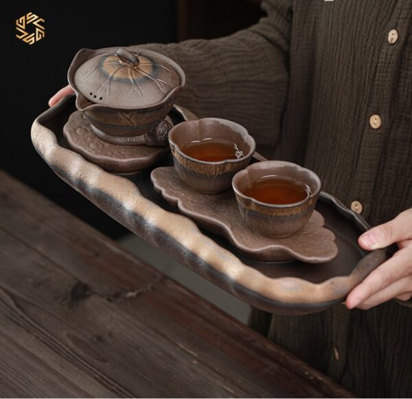 - Bộ Trà gồm : Ấm pha trà dung tích 250ml, khay gốm dung tích 800ml, kháo trà dung tích 1350ml, bộ dụng cụ pha trà, lọc trà và đế kê, tống rót trà, 6 chén mỗi chén dung tích 60 ml. Bộ sản phẩm gồm hộp đựng cao cấp đi cùng, thuận tiện trong quá trình sử dụng.