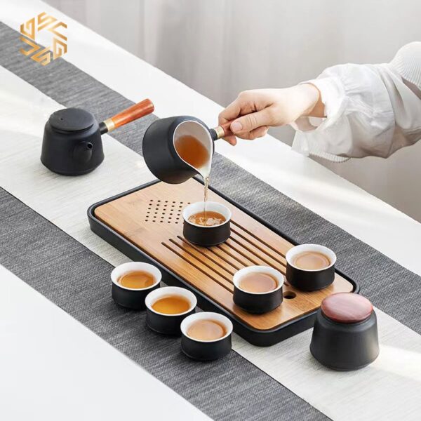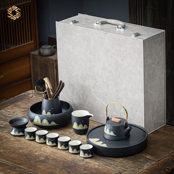 Bộ Trà men gốm thuỷ sơn màu đen BT56