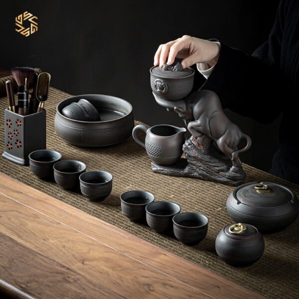 - Chất liệu chế tác bộ trà Bò tót là loại gốm sét tím. Có khả năng chịu nhiệt, giữ nhiệt tốt và rất an toàn cho người sử dụng. Được nghệ nhân vuốt tay thủ công.