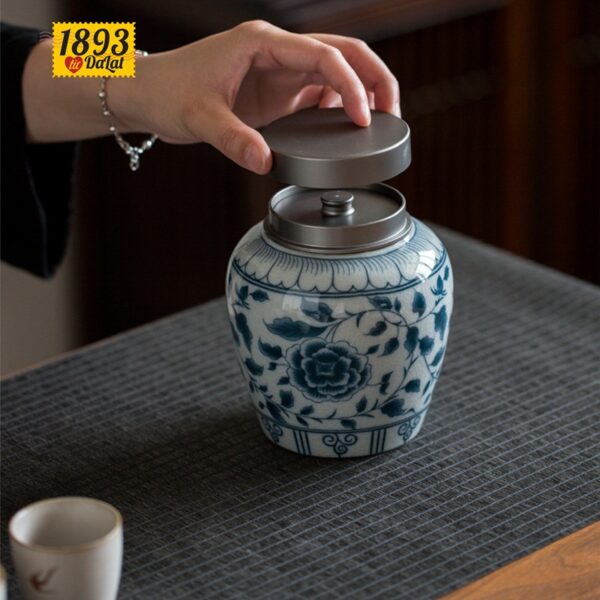 - Họa tiết nhẹ nhàng, nắp được thiết kế 2 lớp đảm bảo lưu giữ hương trà trong thời gian dài. Dung tích hũ 1000 ml, hũ cao 13 cm, chiều ngang 12.5 cm. Chất liệu của hũ bằng gốm. Mẹn rạn cùng họa tiết hoa Đỗ Quyên. Bộ bao gồm túi vải đựng cao cấp đi cùng. Phù hợp cho quà tặng bạn bè, khách hàng, và đối tác. Một món quà đầy ý nghĩa.