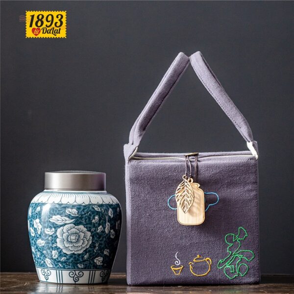 Hũ trà men cổ cùng túi đựng (HT09)