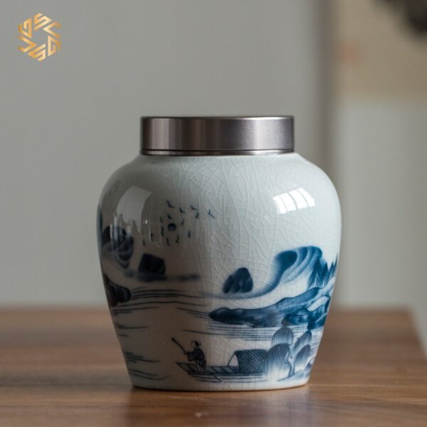 Hũ trà men ngọc xanh dương (HT16)