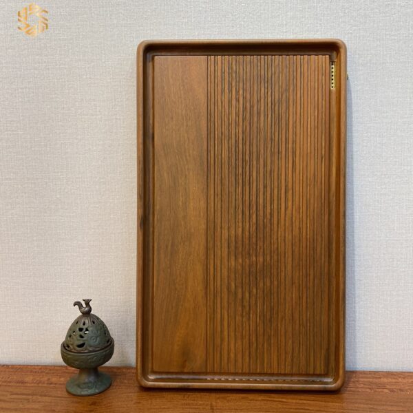 - Khay trà kích thước dài 57 cm x ngang 35 cm x Cao 6 cm. Khay làm bằng Gỗ Hương, chắc chắn và đa nặng. Khay đã qua xử lý chống ẩm, chống mốc . Khay có máng thoát nước tiện lợi khi sử dụng.