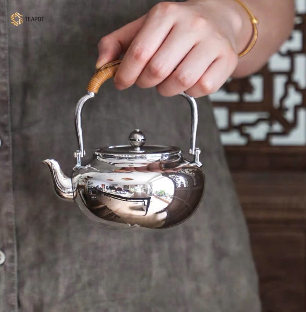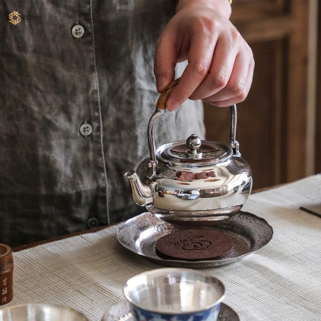Review Ấm trà bạc chế tác thủ công tinh xảo ATB107