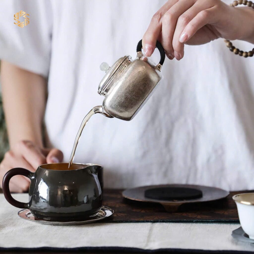 Review Ấm trà bạc chế tác thủ công tinh xảo ATB129