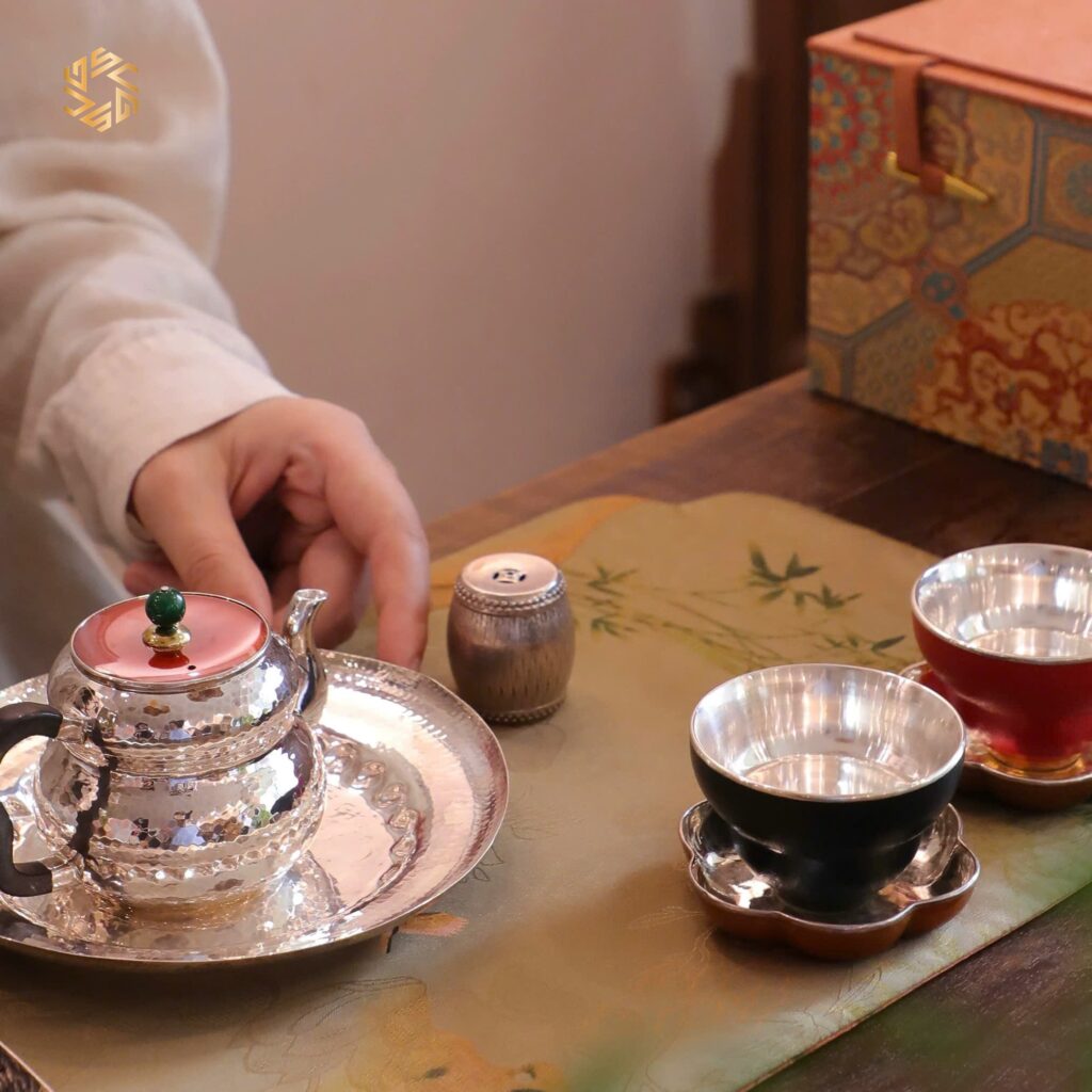 - Ấm bạc có tác dụng kháng khuẩn, giữ tươi mới và làm mềm chất nước. Danh y, nhà dược học nổi tiếng thời Minh – Lý Thời Trân đã viết trong “Bản thảo cương mục” rằng bạc có chức năng làm dịu ngũ tạng, giải tỏa tinh thần, giảm hồi hộp, bài trừ độc tố.