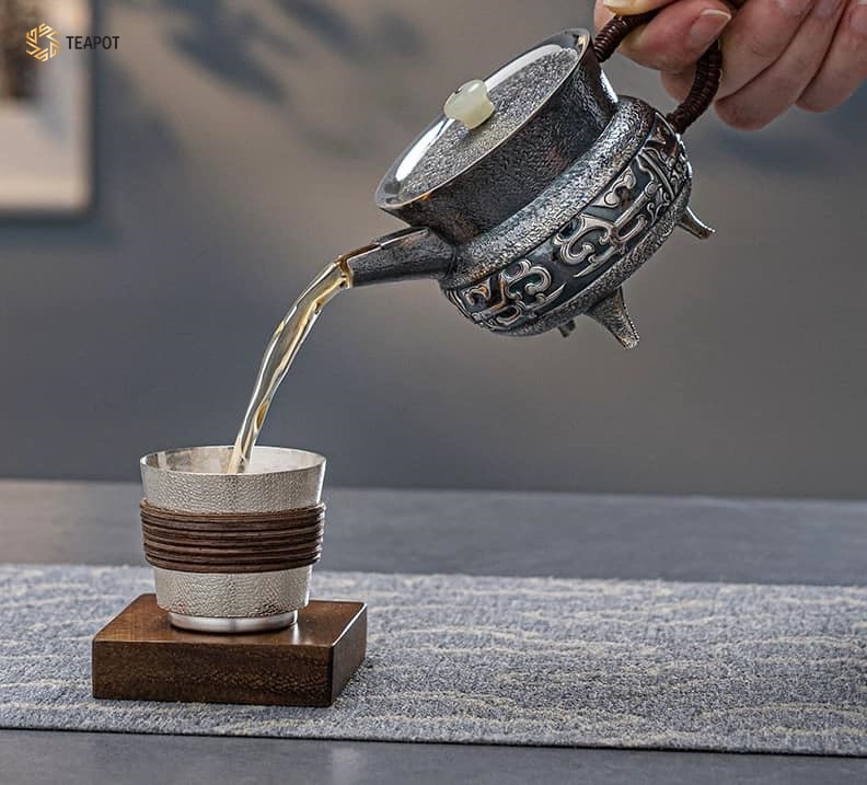 - Ấm bạc có tác dụng kháng khuẩn, giữ tươi mới và làm mềm chất nước. Danh y, nhà dược học nổi tiếng thời Minh – Lý Thời Trân đã viết trong “Bản thảo cương mục” rằng bạc có chức năng làm dịu ngũ tạng, giải tỏa tinh thần, giảm hồi hộp, bài trừ độc tố.