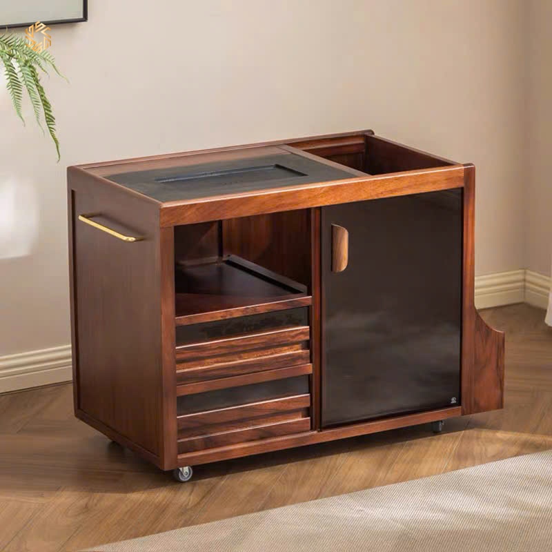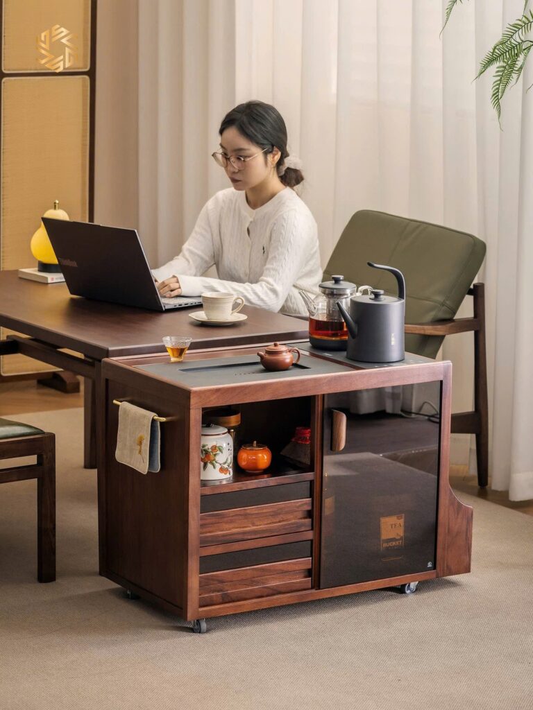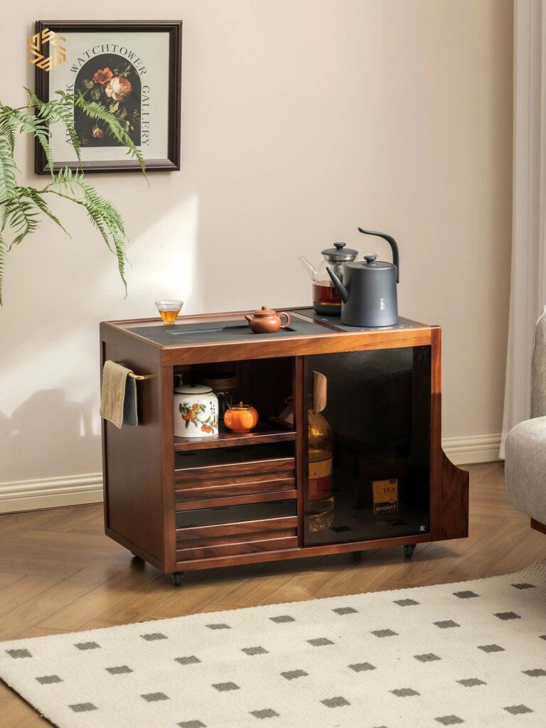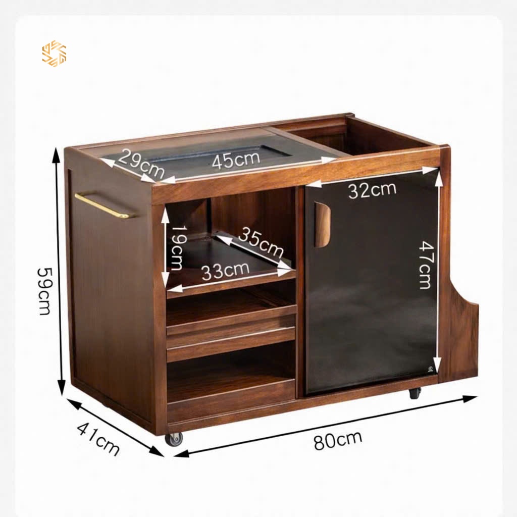 - Công năng: Có tủ chứa bình nước dạng kín, bếp thông minh tự động hút nước, đun sôi, và tự ngắt. Vô cùng tiện lợi cho các không gian Trà. Phòng tiếp khách, Phòng làm việc, sang trọng và tinh tế.