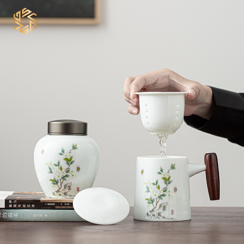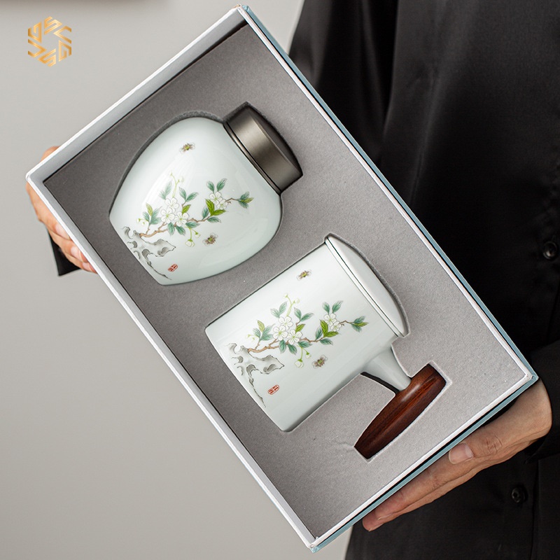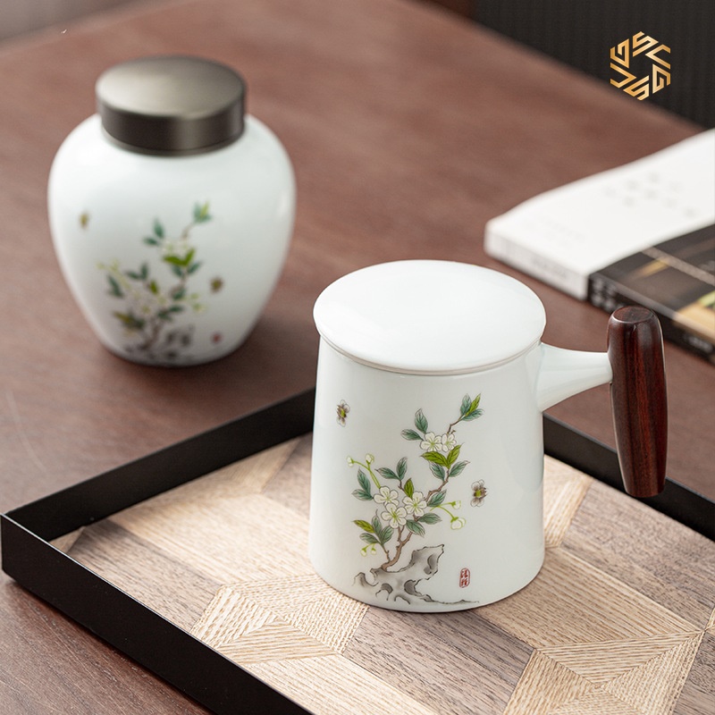 Cốc uống trà bao gồm cả hũ đựng trà CT27