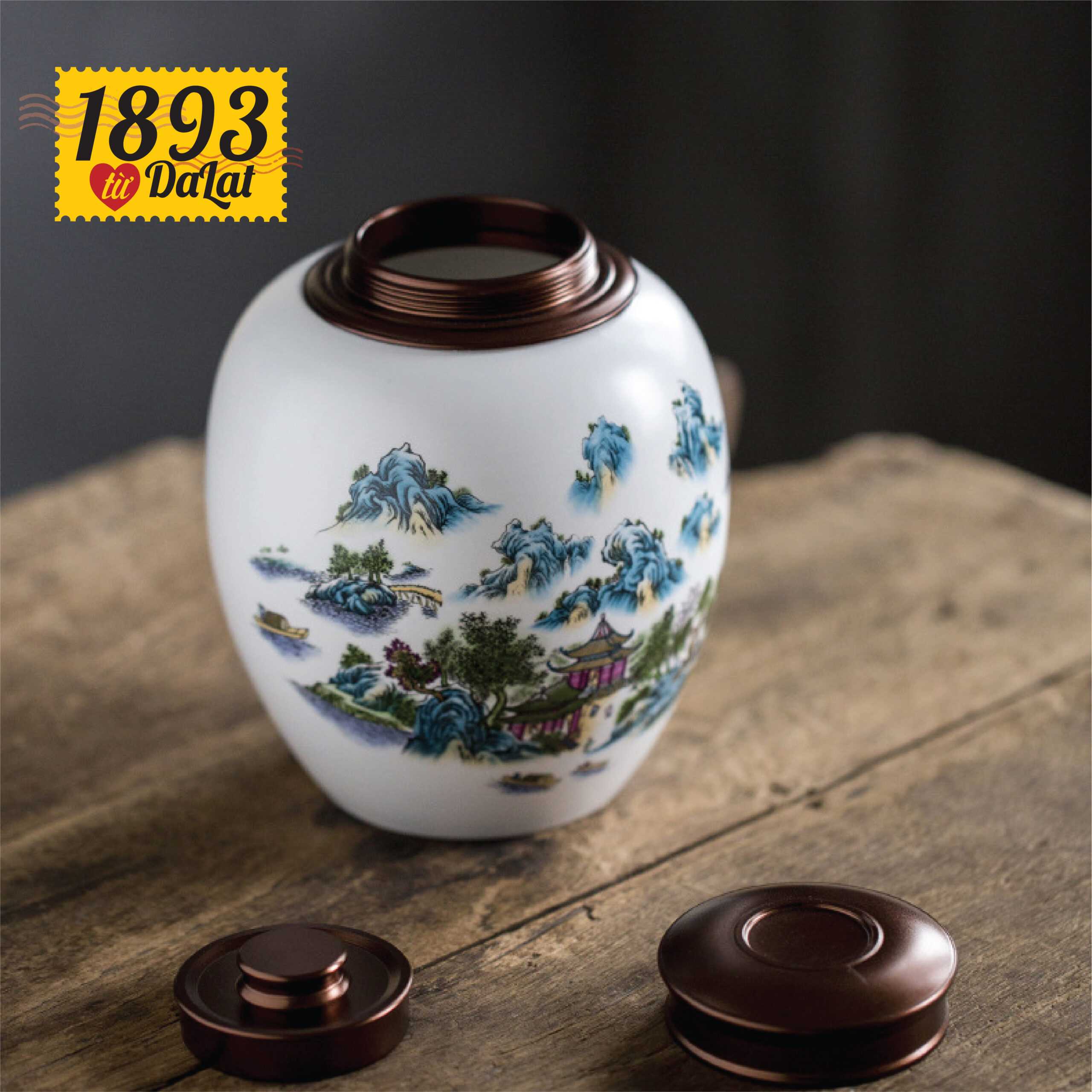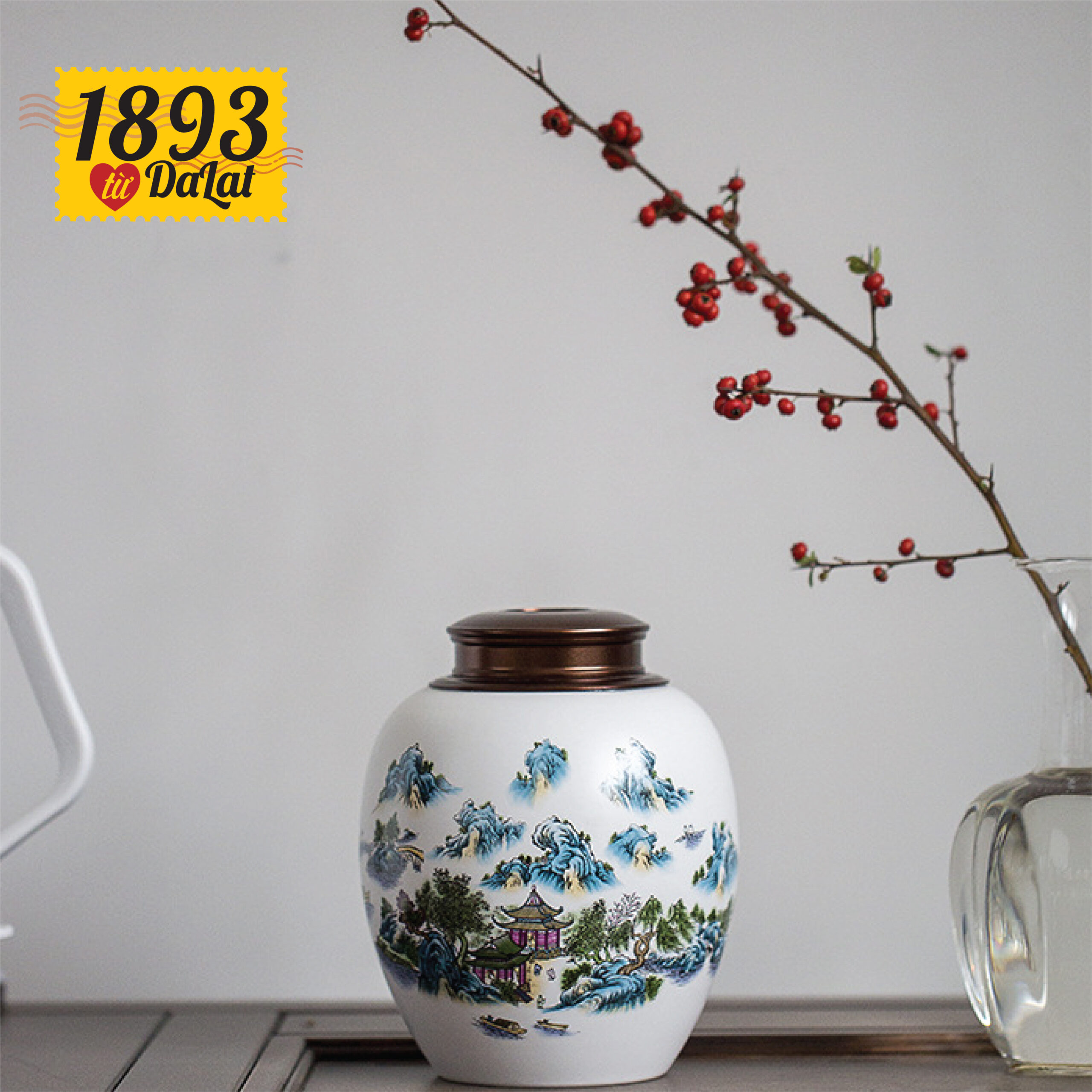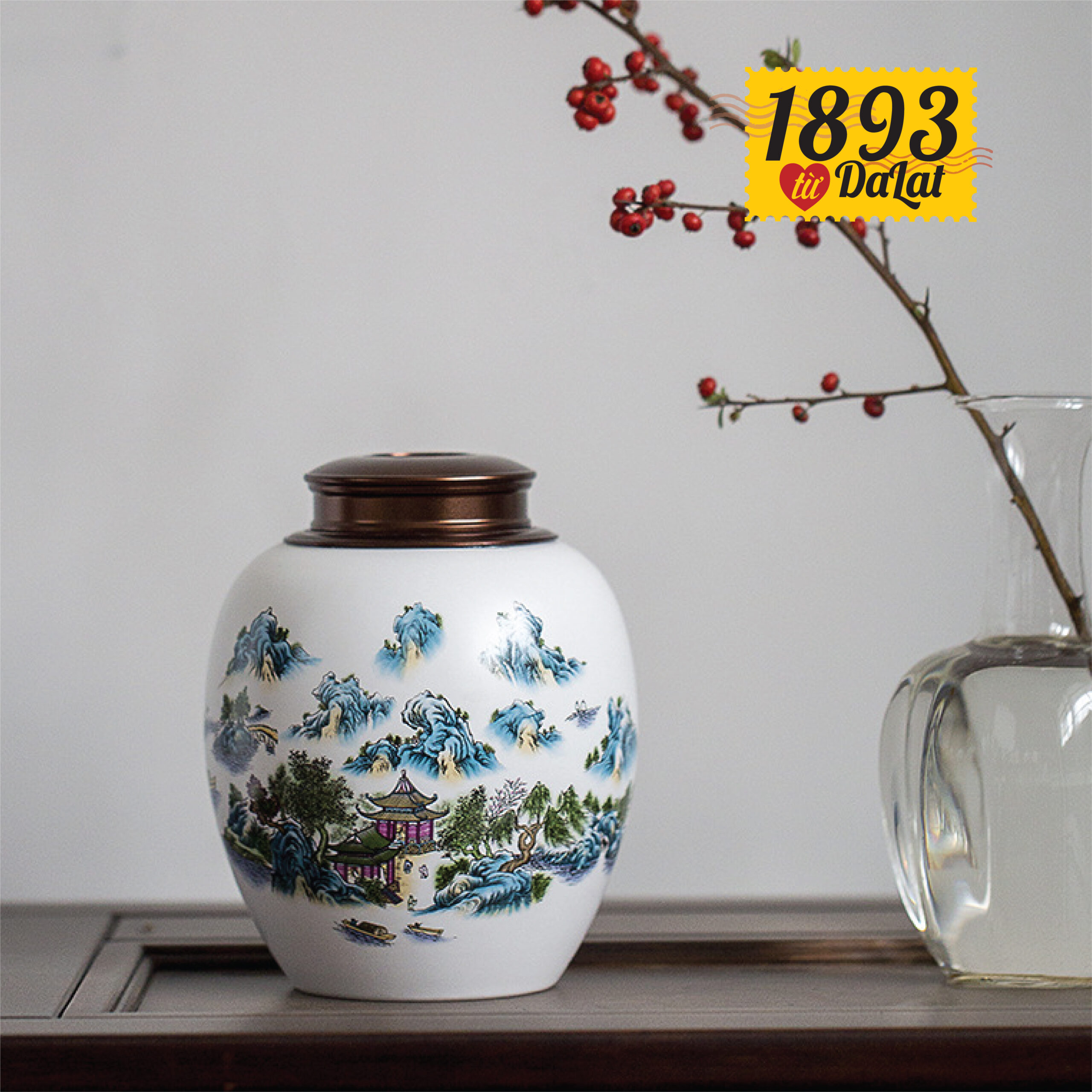Review Hũ trà thủy sơn màu trắng (HT17)