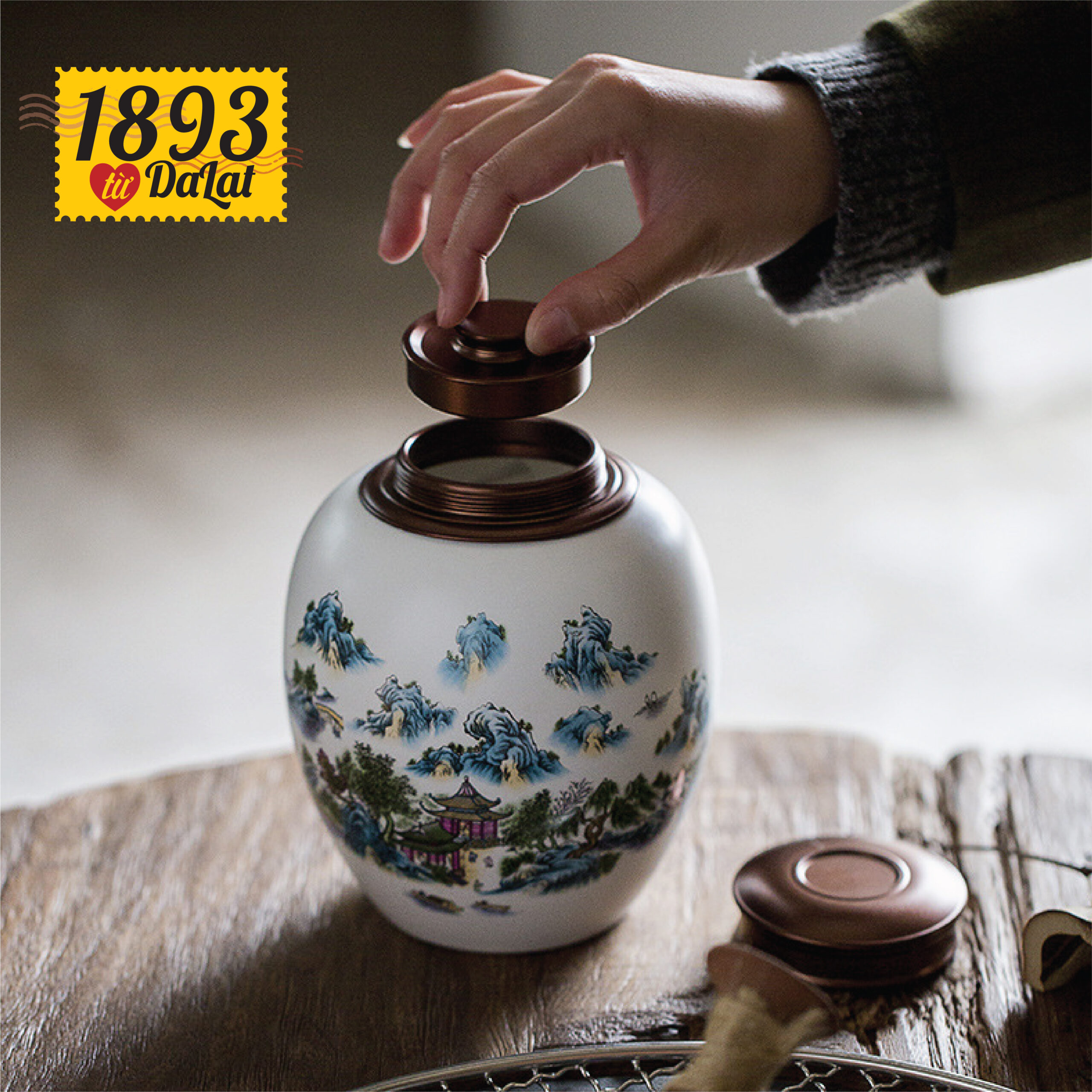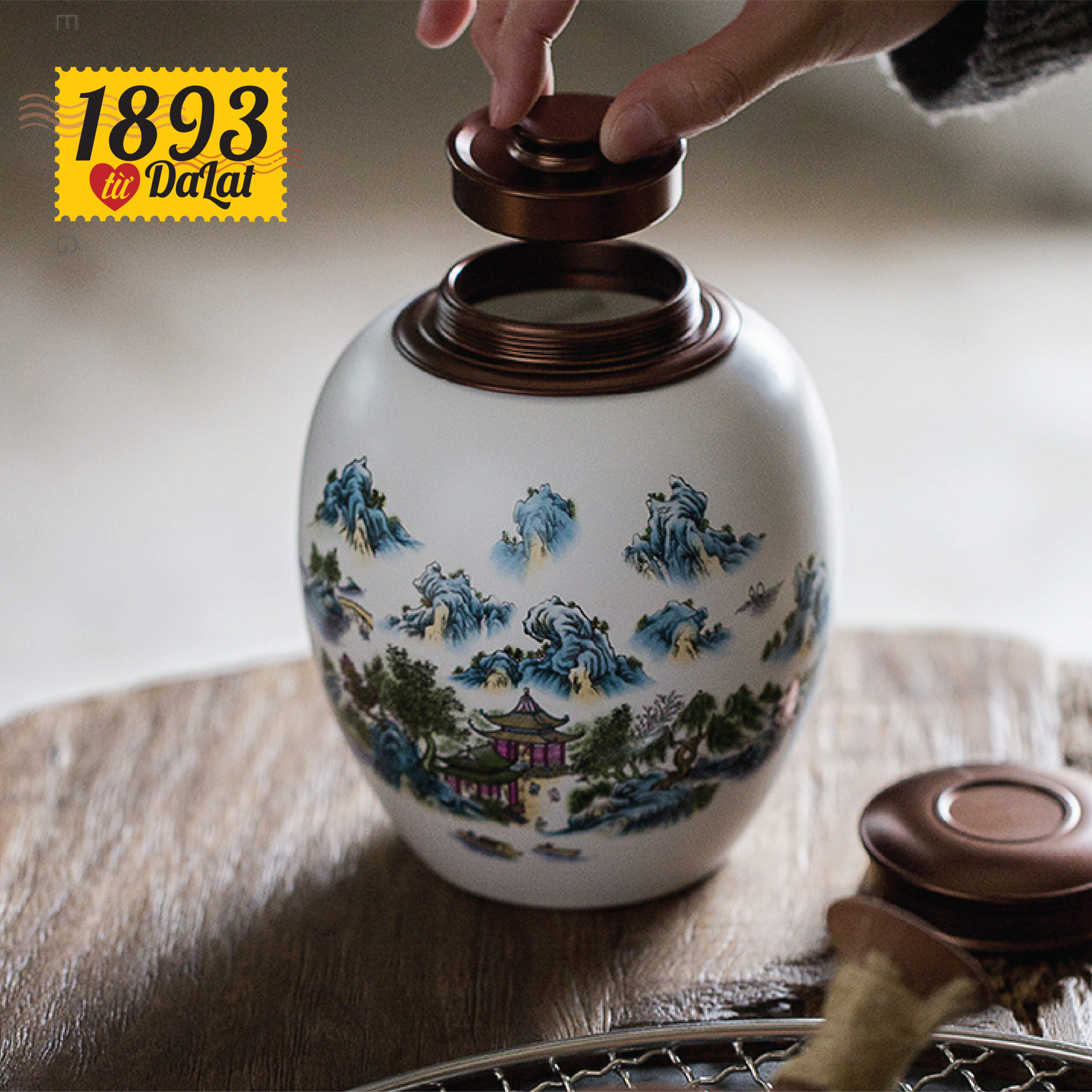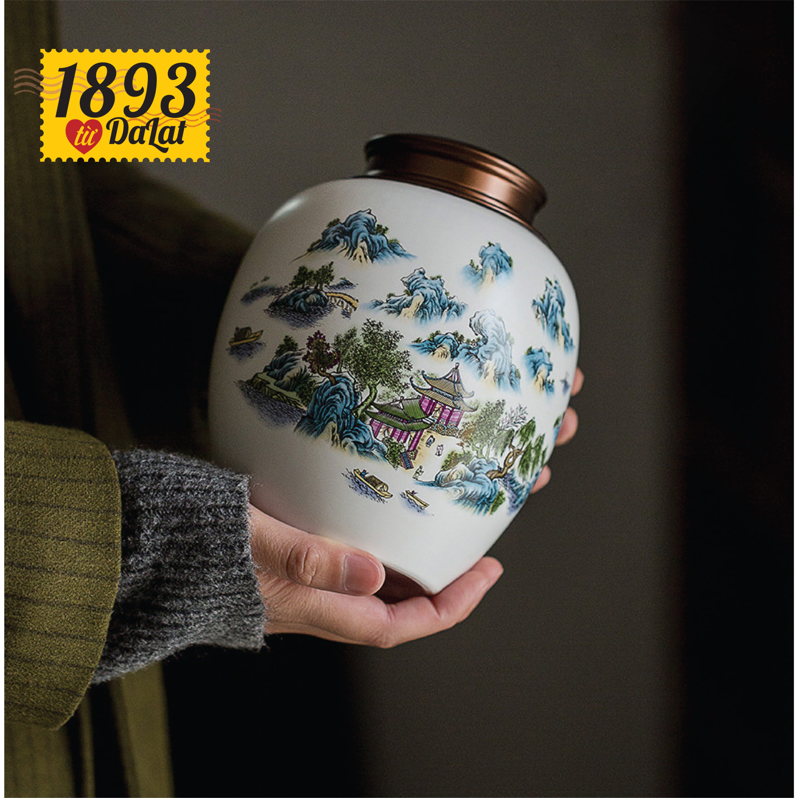 Review Hũ trà thủy sơn màu trắng (HT17)