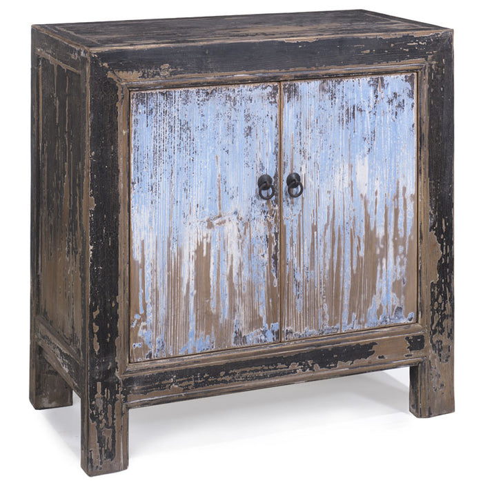 Great as a little sideboard or storage unit in any room, this simple two door cabinet has a single removable shelf inside and the same simple ring handles as the rest of the range. Note that as each piece is individually made, the distressed black and blue finish will vary slightly on each one.
