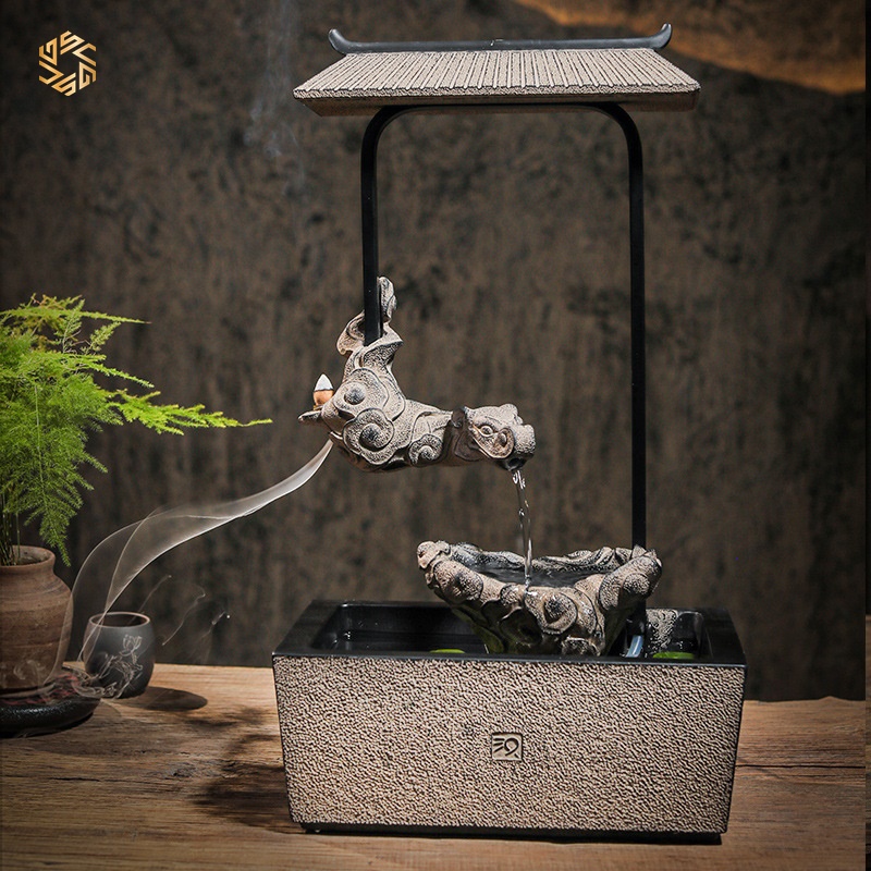- Tiểu cảnh kết hợp decor không gian, thác nước nhe nhàng.