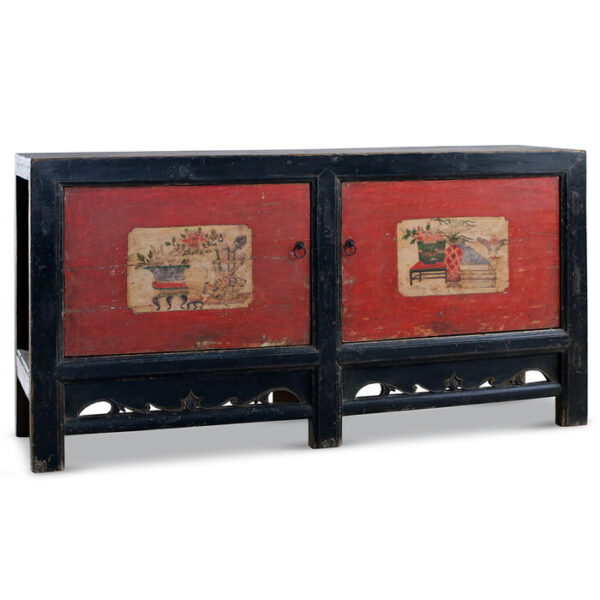 Red Lacquer Gansu Painted Sideboard